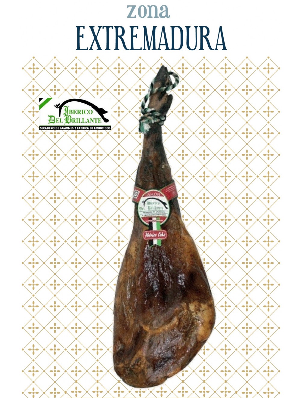 Jamón Cebo Campo 50% Raza Ibérica, alimentados en libertad en las dehesas extremeñas con pastos naturales, hierba y piensos naturales.