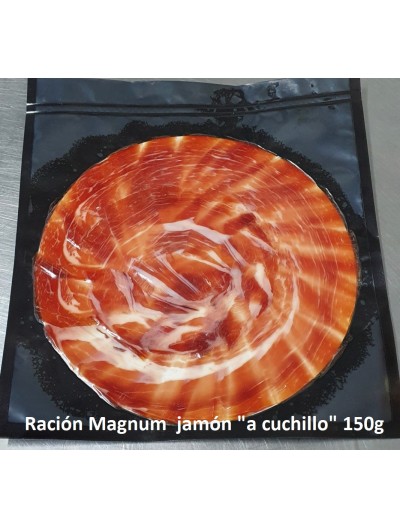 Piezas especialmente seleccionadas y afinadas por el Maestro Jamonero, jamón cruzado con raza 100% Duroc por línea paterna, la raza por excelencia para la hibridación y la única que permite como cruce la norma del Ibérico. La raza Duroc aporta alta infiltración que junto con la curación prolongada del producto garantizan sabores y aromas excepcionales, gracias al curado en secadero natural y maduración prolongada en bodega de más de 33 meses.